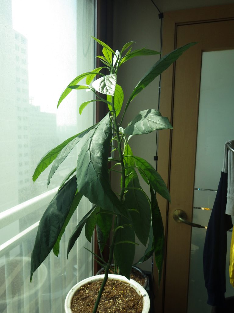 과카몰리 재료 아보카도 씨를 혹시나 하고 심었는데 발아하여 계속 자란다.