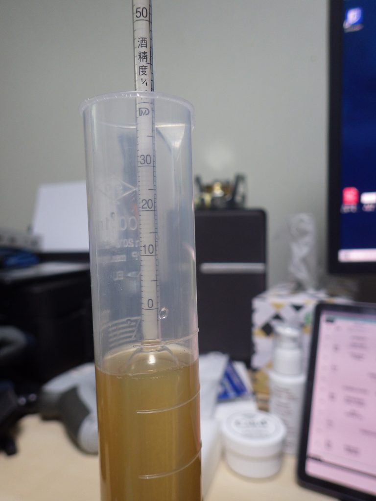 초기 비중을 알아야 나중에 도수 계산을 하는데 비중계가 잠기지 않는다.